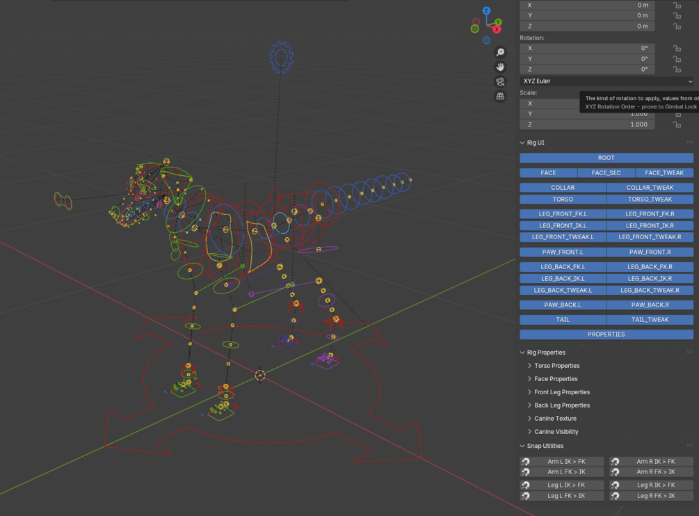 A feral canine Blender model with advanced rigging built for animations and scene creations.